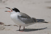 Šat svatební - černá čepička zasahuje od čela na šíji a dolů pod oko a do příuší, dolní část hlavy, strany krku a celá spodina bílé, vrch těla, křídel a kostřec šedé. Ocasní krovky a ocas bílé, pera na ocase s šedým vnějším praporem, krajní s černým. Krajní ruční letky tmavošedé, ke konci do černa, na vnitřním praporu bílé. Zobák je červený s černou špicí(ta může u některých jedinců chybět), nohy červené. Šat prostý - jako svatební, ale bílé čelo, na zbytku čepičky někdy bílé skvrny. Tmavší přední křídelní krovky tvoří nevýraznou pásku, svrchní křídelní krovky a ocas někdy s nádechem do šeda. Zobák černý s červenou ploškou pod nozdrami a u kořene (může být i celý černý), nohy tmavěji červené. Šat mláďat - jako šat prostý, ale čelo s hnědým skvrněním, i zbytek čepičky promísem s hnědou. Pera hřbetu a krovky s hnědorezavými koncovými skvrnami, přední krovky téměř černé - tvoří výraznou pásku na předním okraji křídla. Letky tmavošedé, loketní se světlejšími špičkami, kostřec a ocas šedavé, rýdovací pera mají tmavší okraje. Zobák masový nebo žlutooranžový s černou špičkou (postupně tmavne), nohy růžové až žlutooranžové. Šat 1.roku - jako šat prostý, na vrchu těla ještě zůstávají některá pera z šatu mláďat.