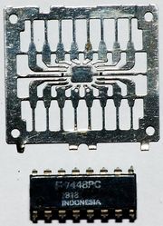 Poté se provede kontaktování polovodičových součástek běžným způsobem a obvod je uzavřen do kovového nebo plastového pouzdra.Pouzdra integrovaných obvodů