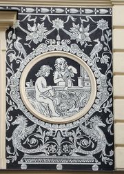 Forma skládající se z obdélníků rozdělených dvěma úhlopříčkami připomíná zadní stranu dopisní obálky. Fasáda zdobená psaníčkovým sgrafitem, napodobujícím iluzívně diamantový řez nebo pyramidovitě zašpičatělé stavební kvádry, vytváří dokonalý dojem plasticity.