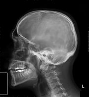 Bočná projekce lbi (levá), snímkováno digitálním rentgenem