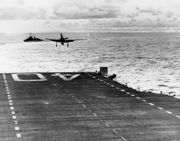 F8F-1 přistává na palubě letadlové lodi USS Tarawa, 1948