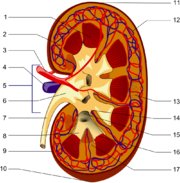 - juxtamedulární, ze kterých odcházející arterioly jdou ve formě přímých cév (vasa recta) do hloubky dřeně a tu zásobují krví. Její zvýšené prokrvení způsobí pokles osmolalita|osmolality dřeně (tzv. vymývací efekt) a tím poklesne i koncentrační schopnost ledvin (tlaková diuréza).