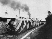 - plošinový - nízký vagón určený k přepravě techniky, tanků, motocyklů apod. Mohl být na něm umístěn tank (i nepojízdný), který z něho vedl palbu.