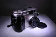 - Hledáčkový fotoaparát – přístroj se zvláštním průzorem vedle objektivu, tzv. hledáčkem, pomocí něhož fotograf komponuje scénu. Hledáček však neukazuje scénu skrz objektiv, ale místo toho velmi přibližně ukáže, co by objektiv mohl zachytit.