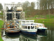Výškový rozdíl je překonáván dvěma klasickými zdymadly a čtyřmi hydraulickými lodními výtahy, z nichž každý překonává rozdíl přibližně 17 metrů. Lodní výtahy: