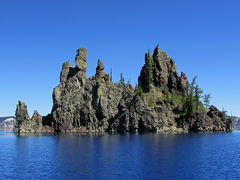Ostrov se nachází na jihovýchodním konci Crater Lake a vyčnívá asi 200 metrů (656 stop) ze stěny kaldery.
