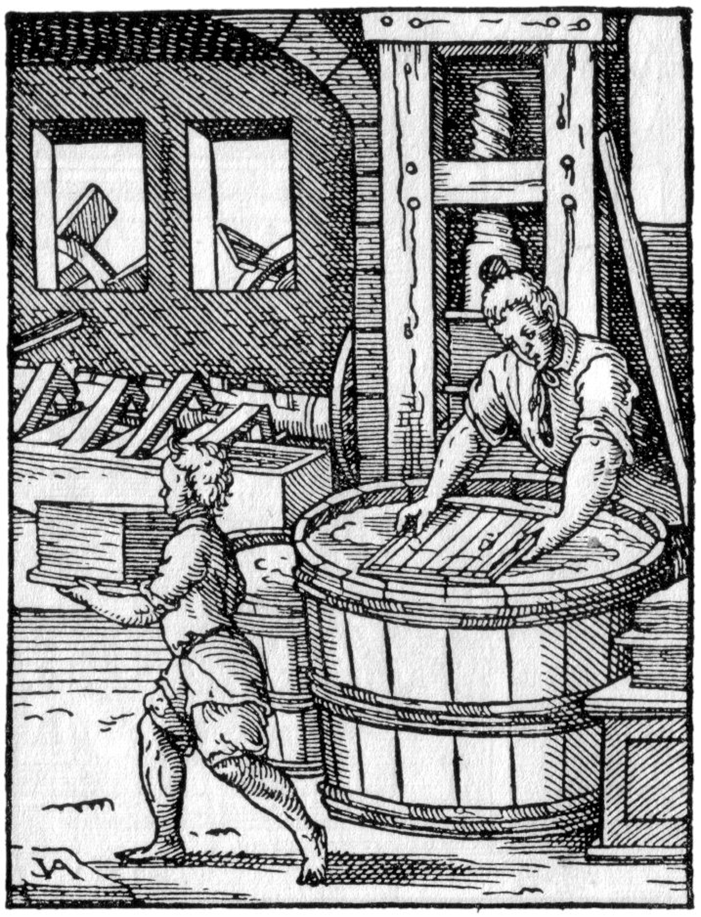 - Woodcut from: Jost Amman (1539-1591):True Description of all Professions on Earth, exalted and humble, spiritual and worldly, all Arts, Crafts, and Trades ... (first printing Frankfurt am Main 1568; also known as the Book of Trades) In the book, the picture is accompanied by the following text by Hans Sachs: