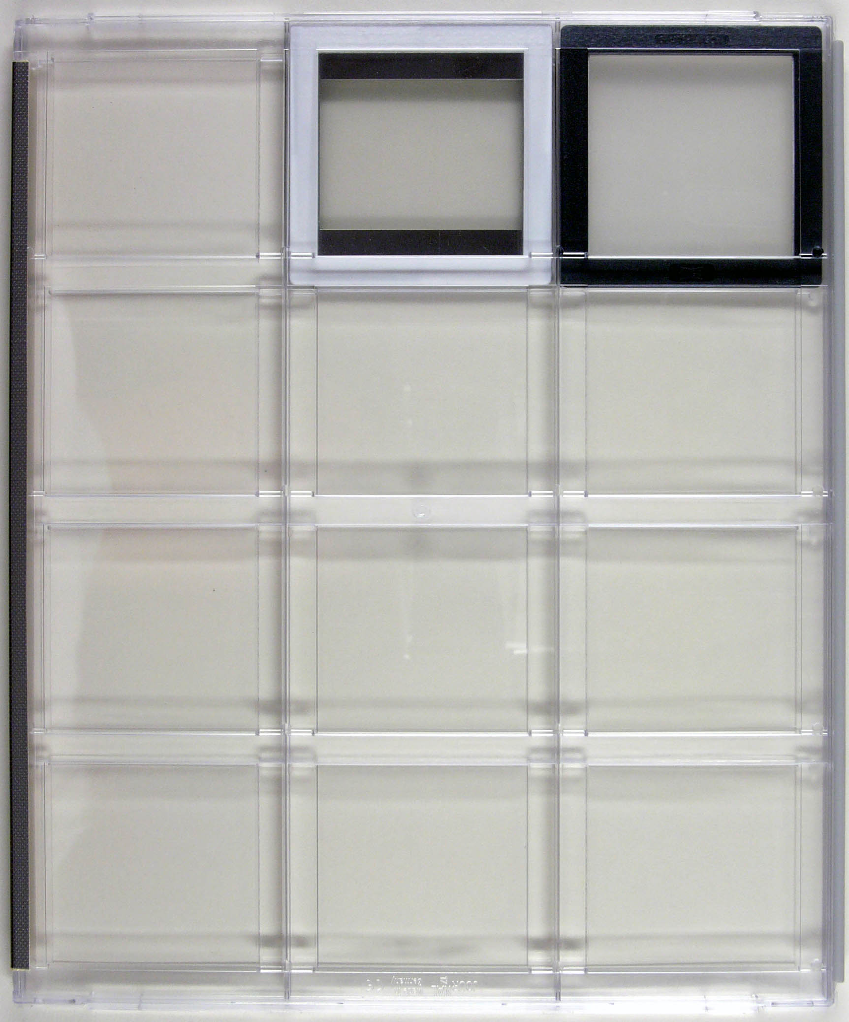 Fotografie + Description: Plastic box used to archive medium format slides (6 x 6 cm)