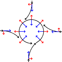 Způsob, jakým se proudění odklání, a směr pohybu se nazývá Buys-Ballotovo pravidlo. Na severní polokouli směřuje pohyb okolo tlakové níže proti směru hodinových ručiček. Na jižní polokouli směřuje po směru ručiček; dynamika otáčení je zde zrcadlový odraz severu. Cyklóny se nevytváří na rovníku, protože v tamějších oblastech je Coriolisův parametr příliš malý.